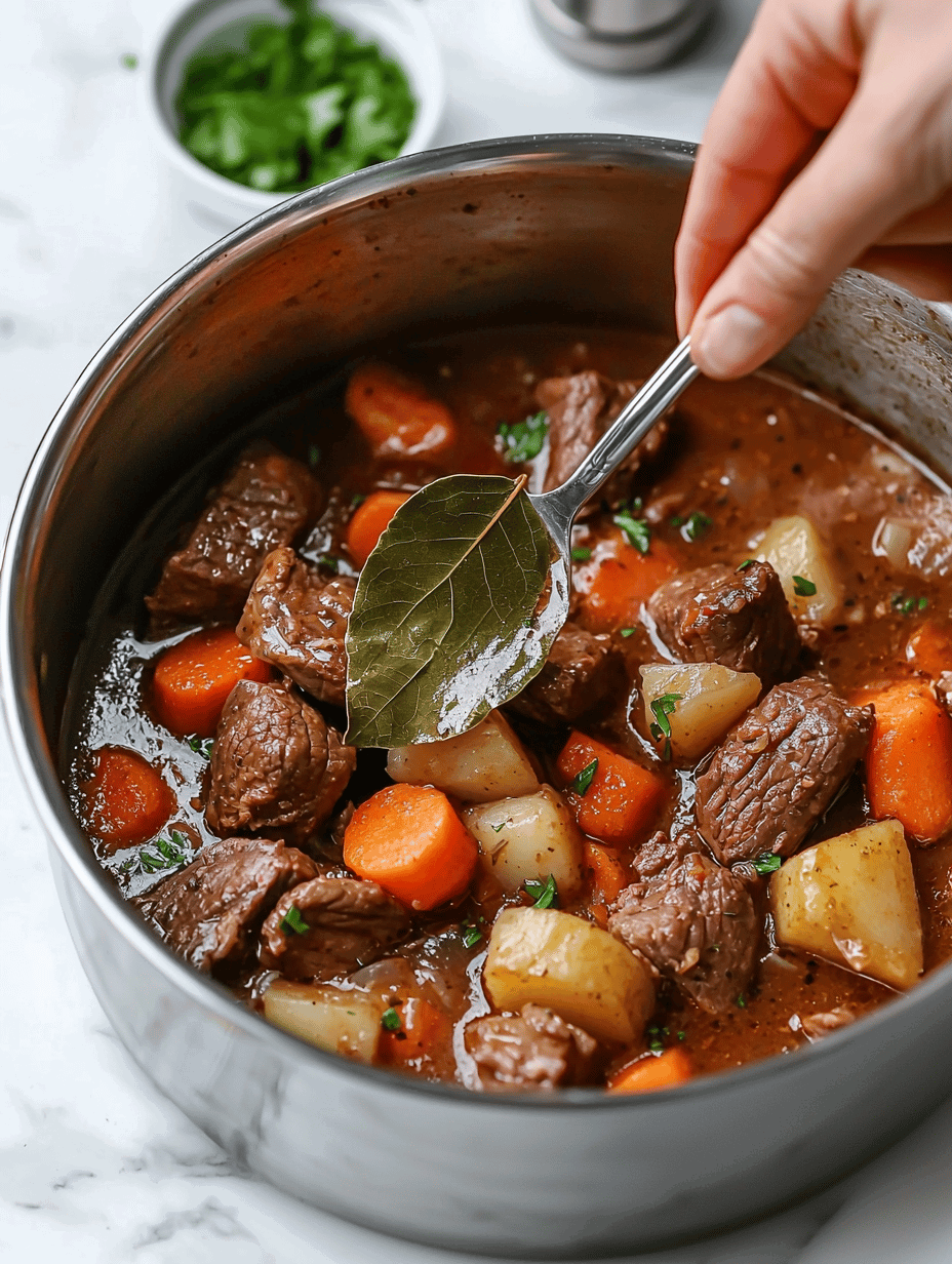 - Once cooked, remove the bay leaf and give the stew a gentle stir. Check the seasoning and add more salt or pepper if needed for balanced flavor.