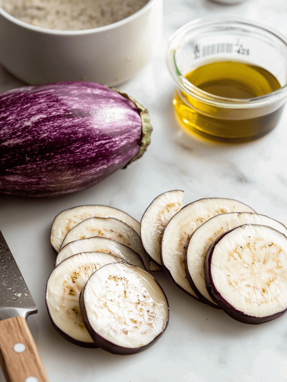 • Preheat your oven to 425°F (220°C). Slice the eggplants into rounds about ½ inch thick, aiming for even pieces that cook uniformly.
