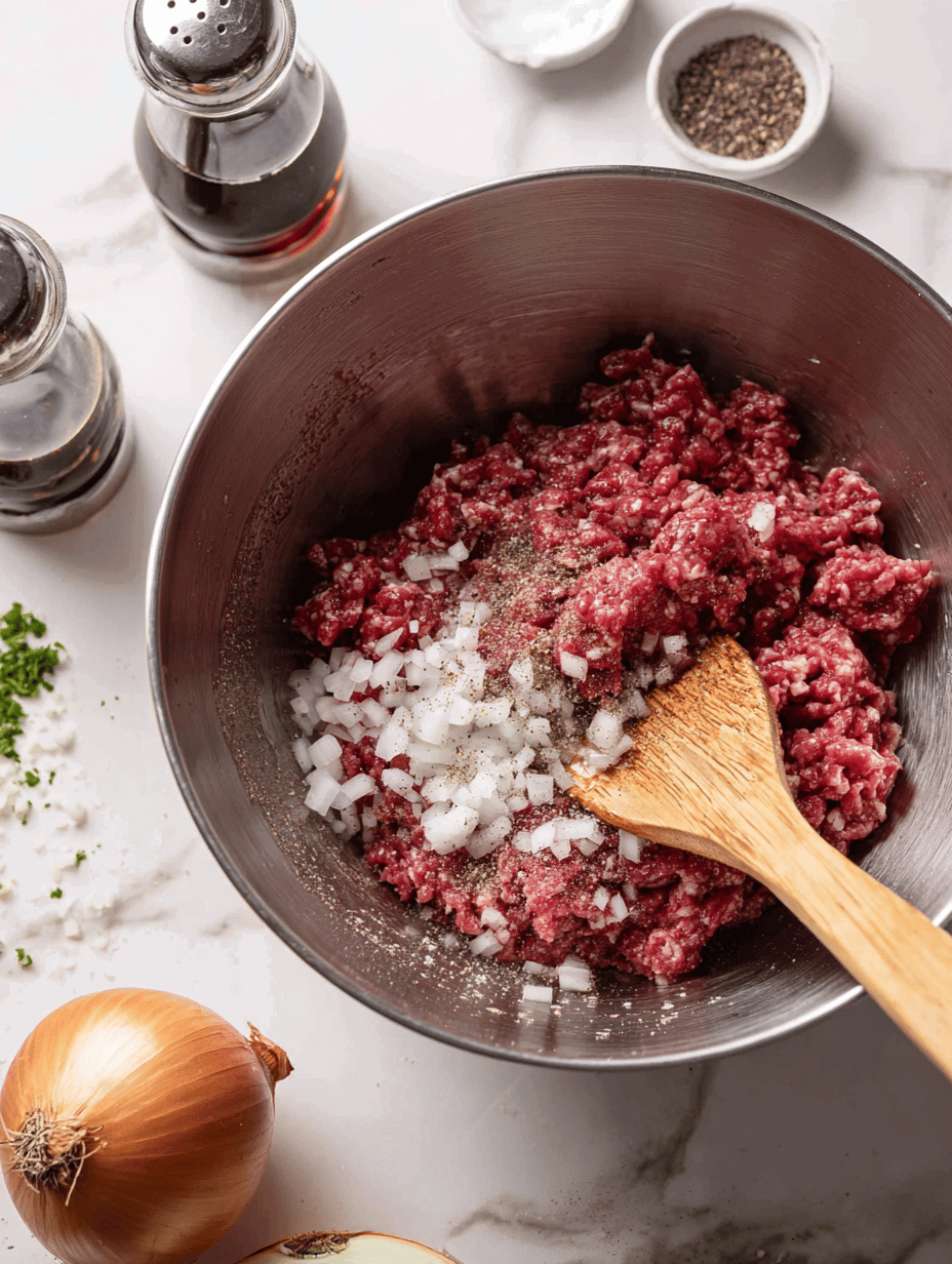 • Ground beef: The foundation—juicy, rich, with enough fat to stay moist and flavorful.