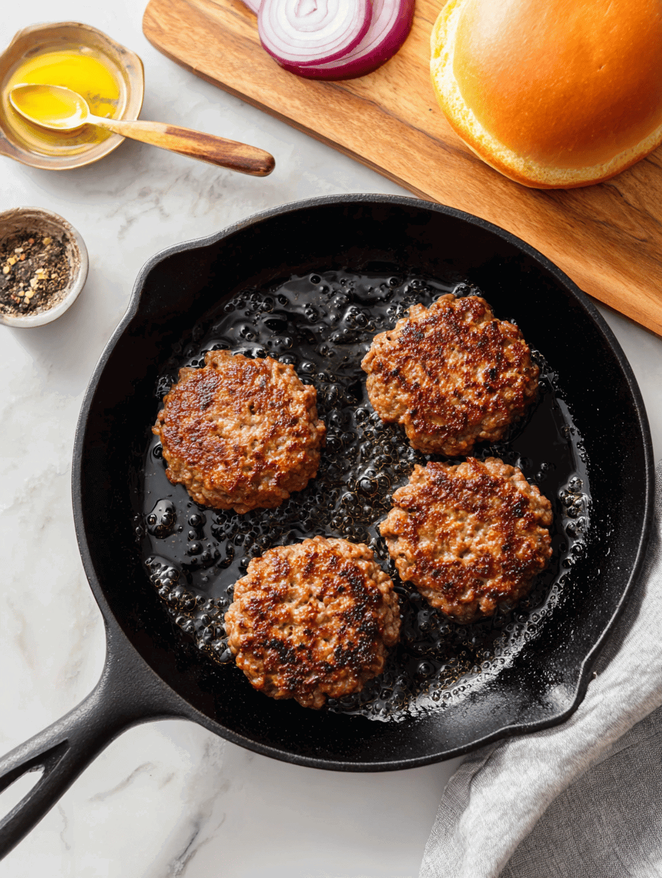 Step 3: Cook the patties for about 4 minutes per side, until they develop a deep brown crust.