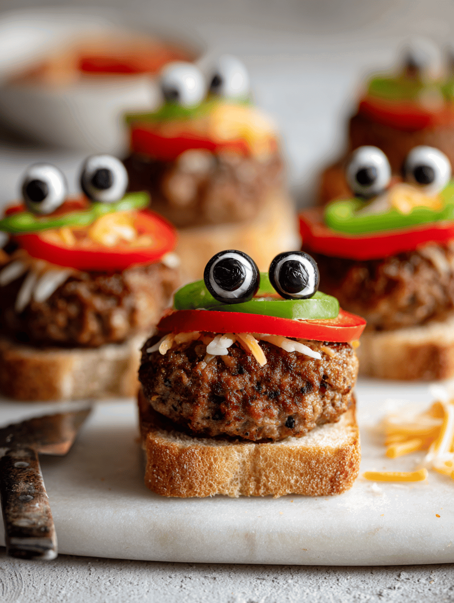 Feel free to get creative with additional toppings like sliced peppers or shredded lettuce for extra monster flair.