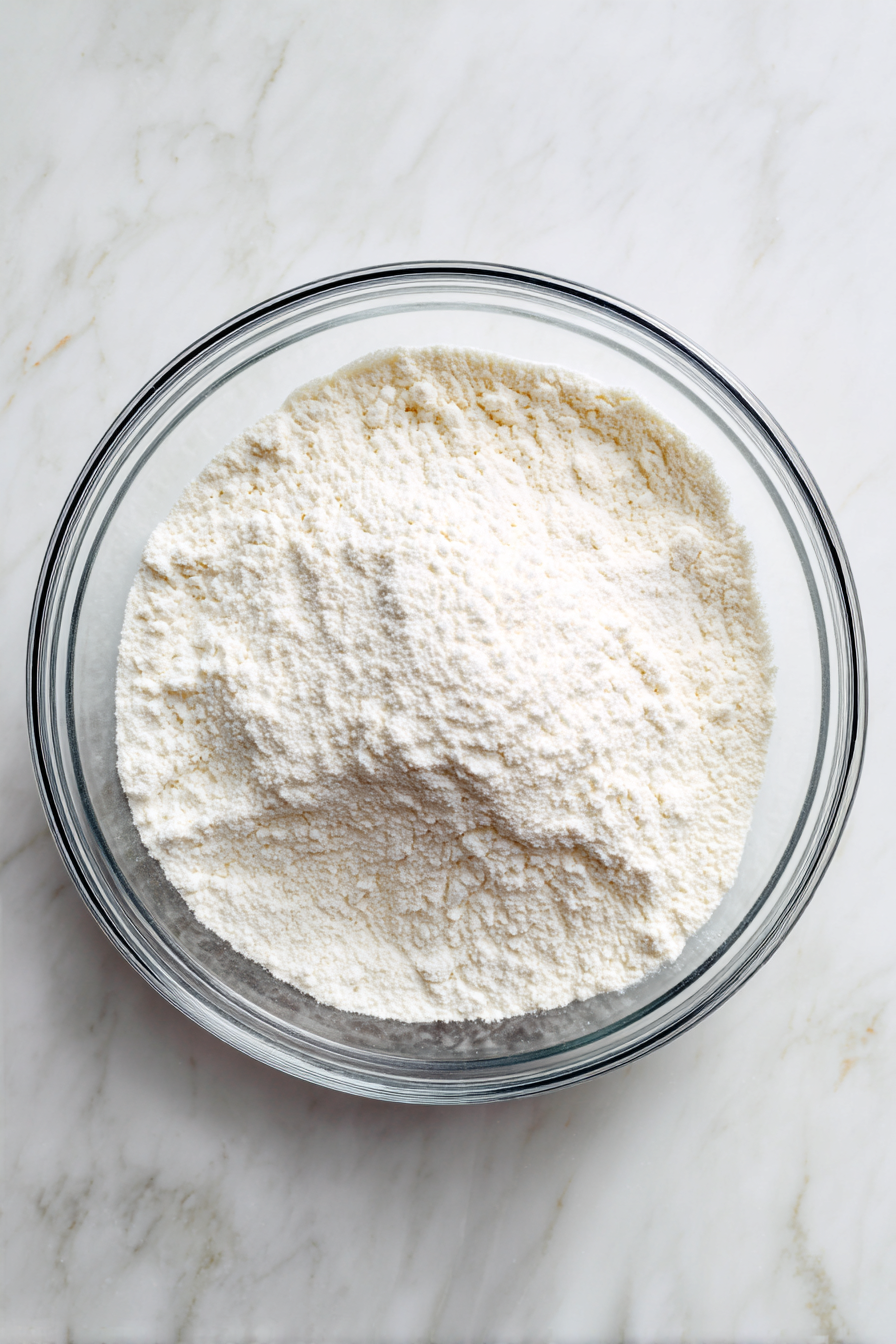 - In a large bowl, mix flour, sugar, baking powder, and salt.