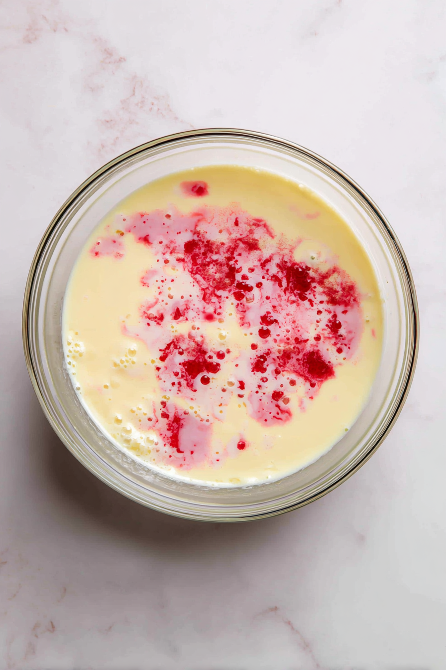 - Add butter, eggs, milk, oil, yogurt, vanilla, food gels, fruit flavorings, and tequila (optional). Mix until smooth.