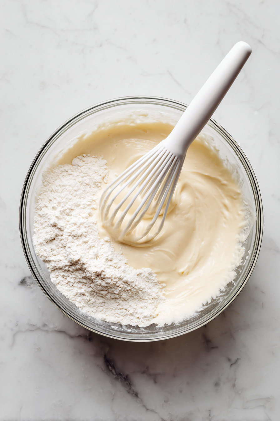 - Mix in sour cream and milk, then fold in dry ingredients.