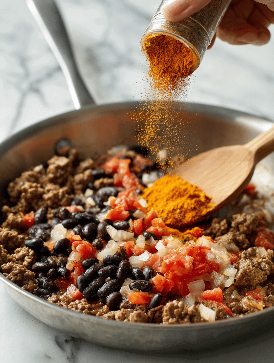 - Spice it up: Stir in taco seasoning or your spice blend. Cook for 1-2 minutes until fragrant, the spices shimmering in the oil.