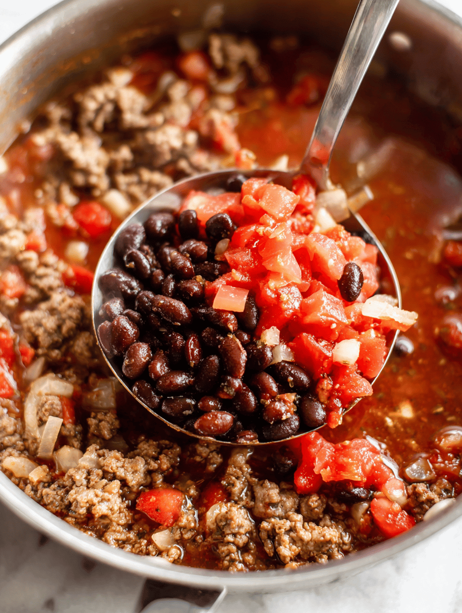 - Ground beef: I brown it until it’s deeply caramelized, the fat rendering out, adding richness. Swap with turkey or lentils if you want a leaner or vegetarian version.