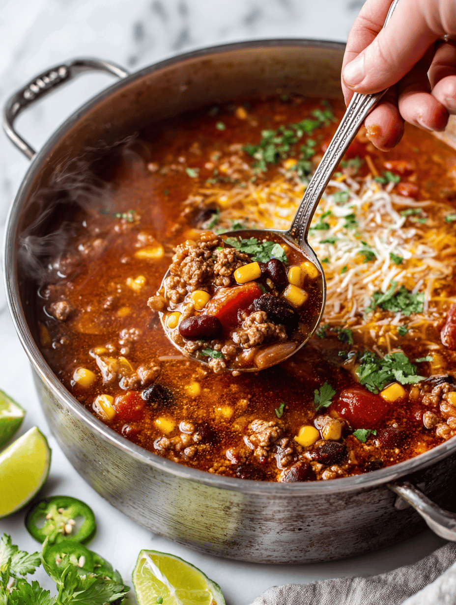 - Taste the soup and adjust seasoning if needed—maybe a pinch more chili powder, salt, or pepper to deepen the flavor.