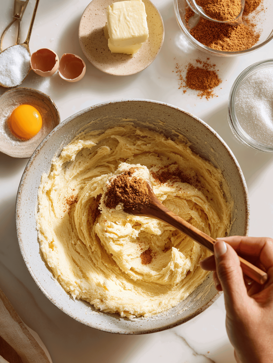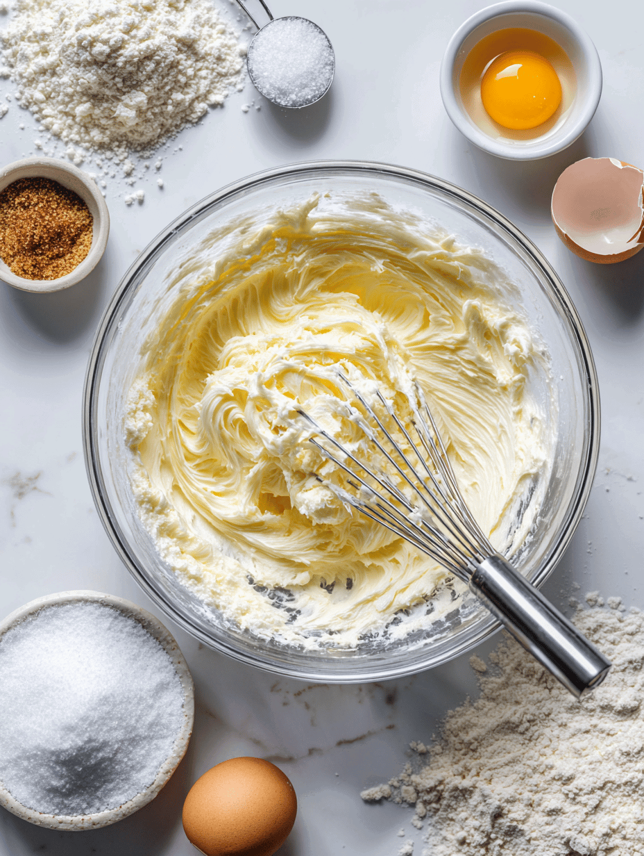 - Begin by creaming together the softened butter and granulated sugar in a mixing bowl until the mixture is light, fluffy, and has a pale yellow color, about 2 minutes. You’ll notice the aroma becomes sweet and creamy as you mix.