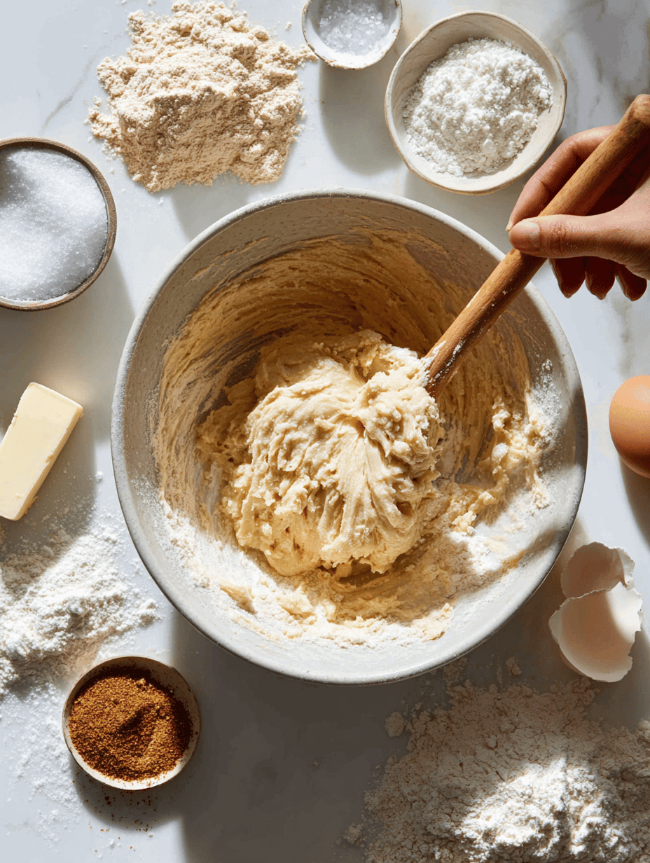 - Gradually add dry ingredients to wet, mixing on low. The dough will come together—soft but scoopable.