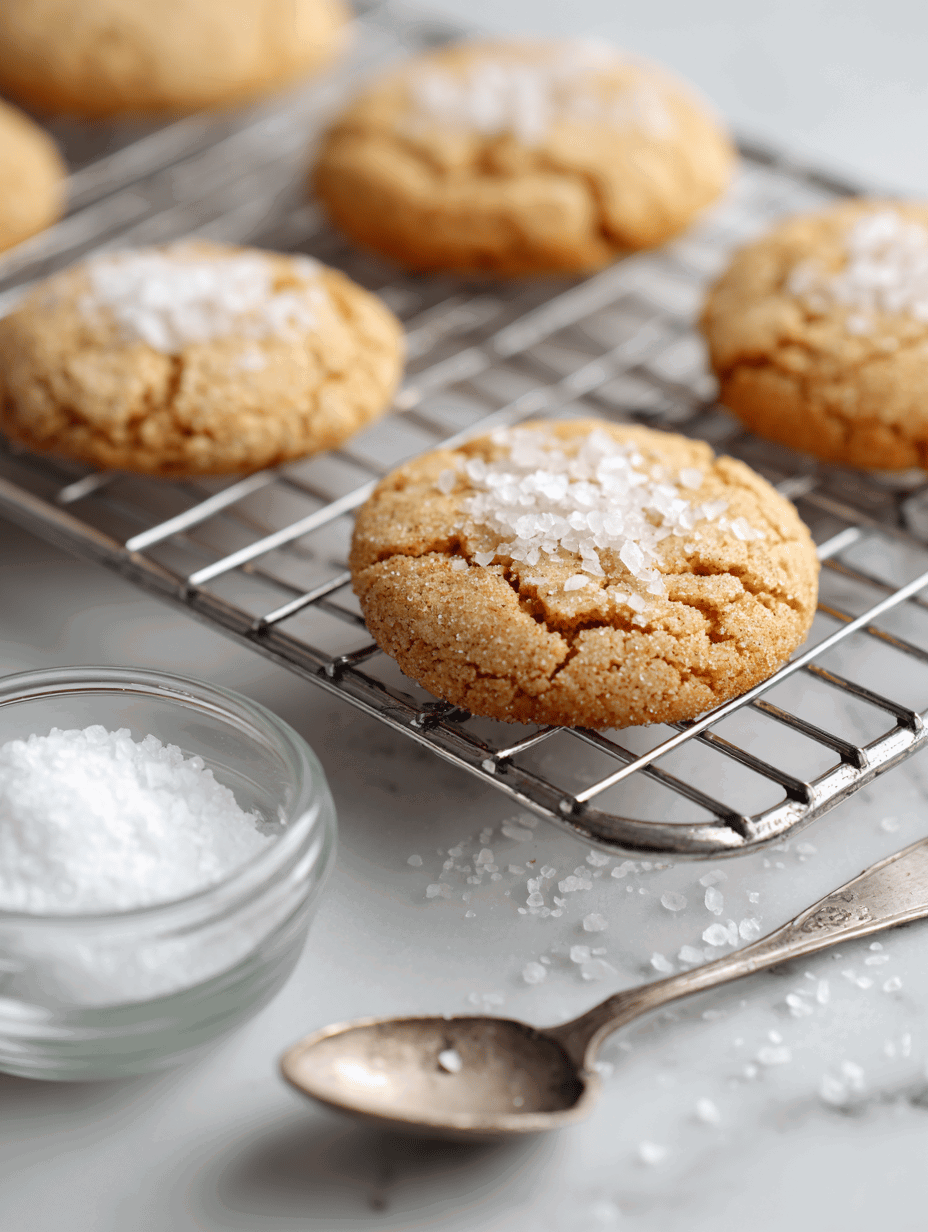 - Transfer the cookies to a wire rack to cool completely. Once cooled, sprinkle lightly with flaky sea salt for a flavor contrast and garnish.