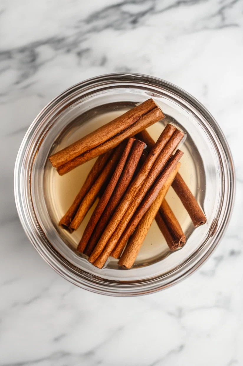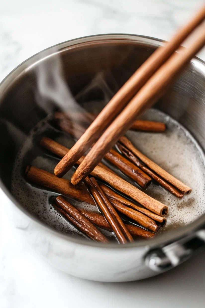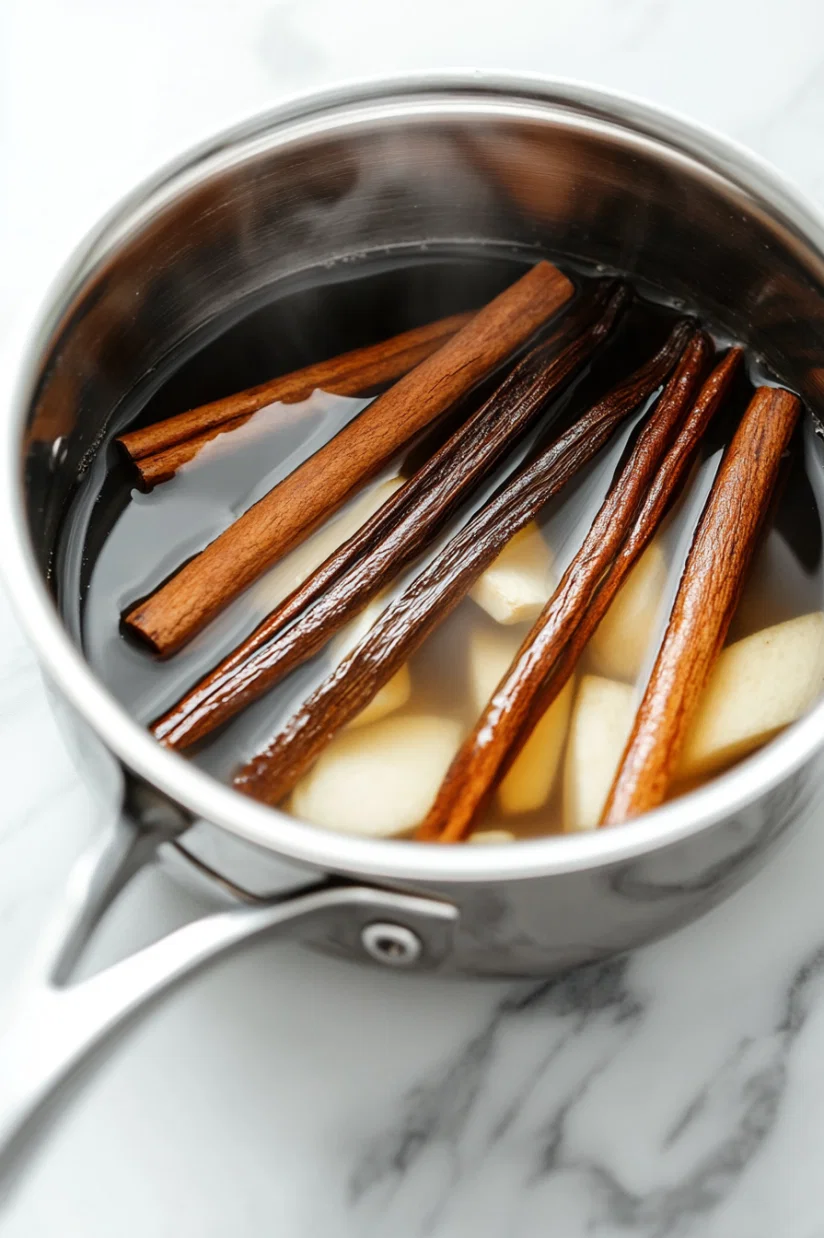 - Add the cinnamon sticks to the water, ensuring they are submerged slightly as the water heats.