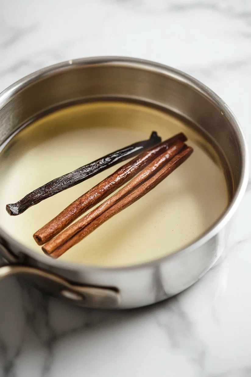 - Stir in the vanilla extract, releasing a sweet, fragrant aroma as it mixes into the simmering water.