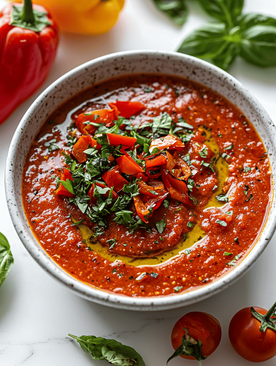 What makes this recipe stand out is how it invites you to embrace the chaos of roasting peppers, peeling, and blending—all with the promise of a vibrant, velvety finish. It’s almost meditative, turning routine kitchen time into a purposeful ritual. Plus, it’s perfect for those days when you crave something familiar yet wildly new.