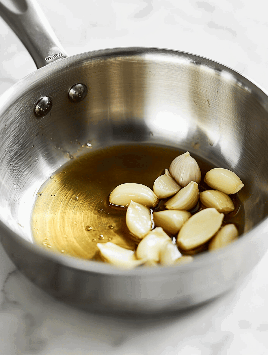 • In a saucepan, heat a tablespoon of olive oil over medium heat. Add the whole garlic cloves and sauté until fragrant and just beginning to brown, about 1-2 minutes.