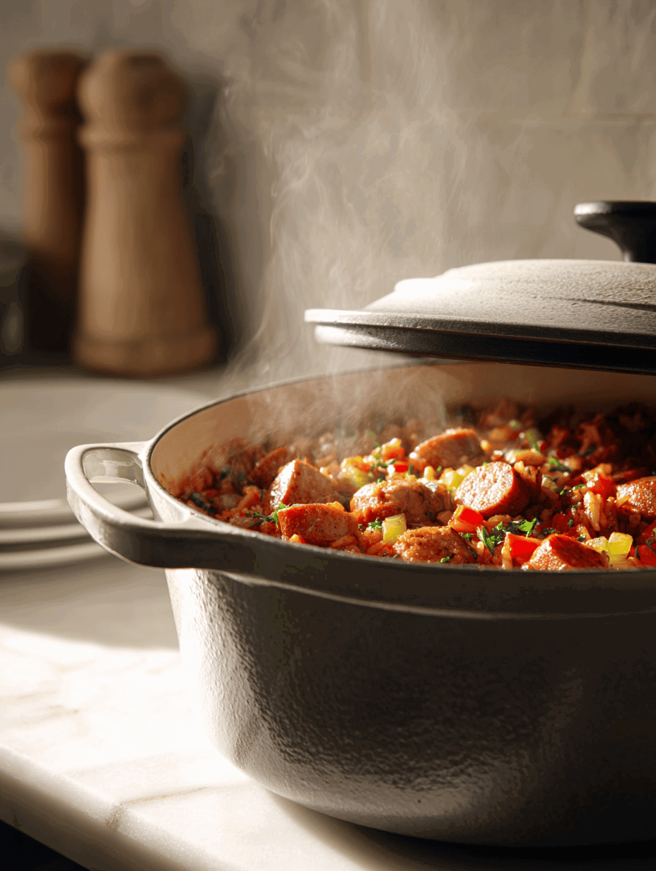 Right now, with the weather cooling and the desire for something hearty but not heavy, this dish feels exactly right. It’s the kind of meal that gathers people around, filling the house with smoky, spicy smells that make everyone pause. A pot of jambalaya is more than dinner—it’s a reminder that good food doesn’t need fuss, just honest ingredients and a little patience.