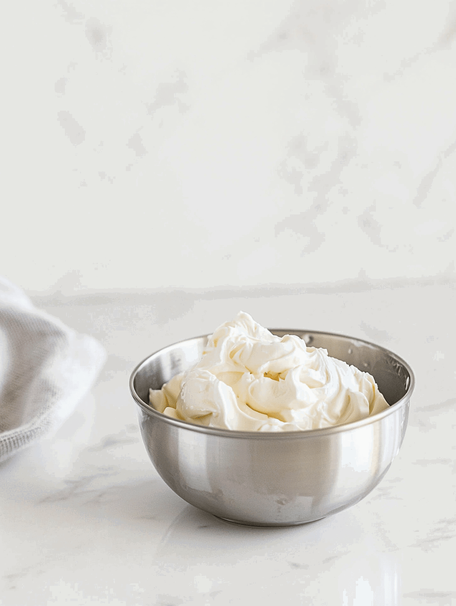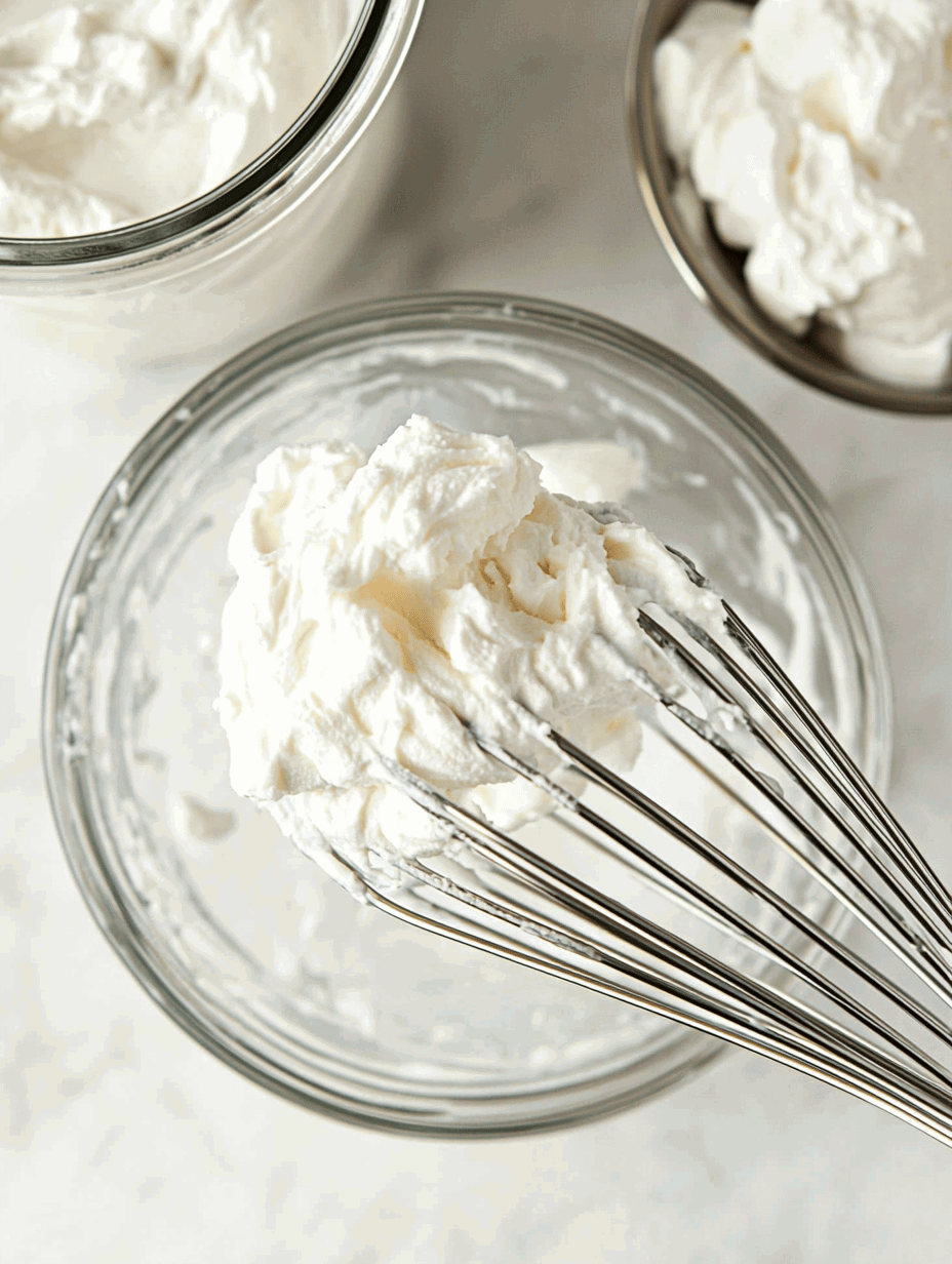 - Continue whipping until the foam becomes velvety, lush, and holds a soft peak that gently curls at the tip when you lift the whisk.