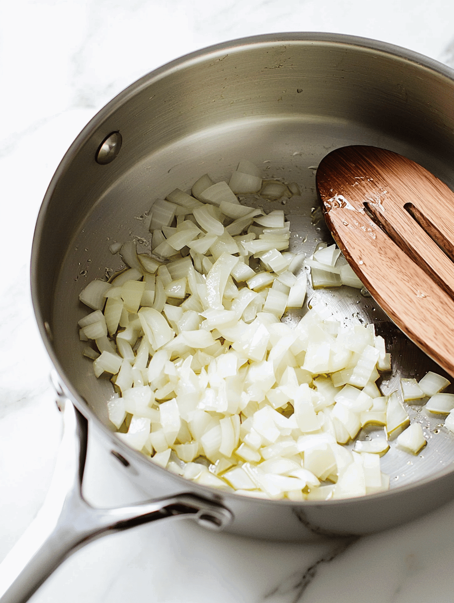 • Heat a large pot over medium heat and add olive oil. Once shimmering, add the chopped onion and sauté until translucent and fragrant, about 5 minutes.