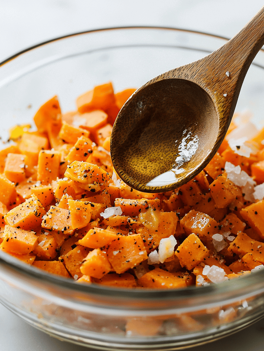 - If using, drizzle olive oil over the mixture, then season with salt and pepper.
