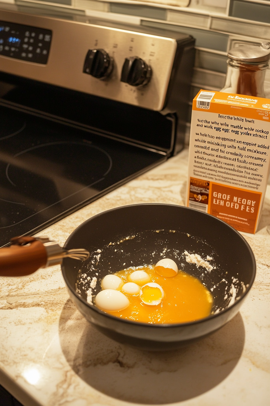- Add egg, egg yolks, and peppermint extract; whisk until combined.