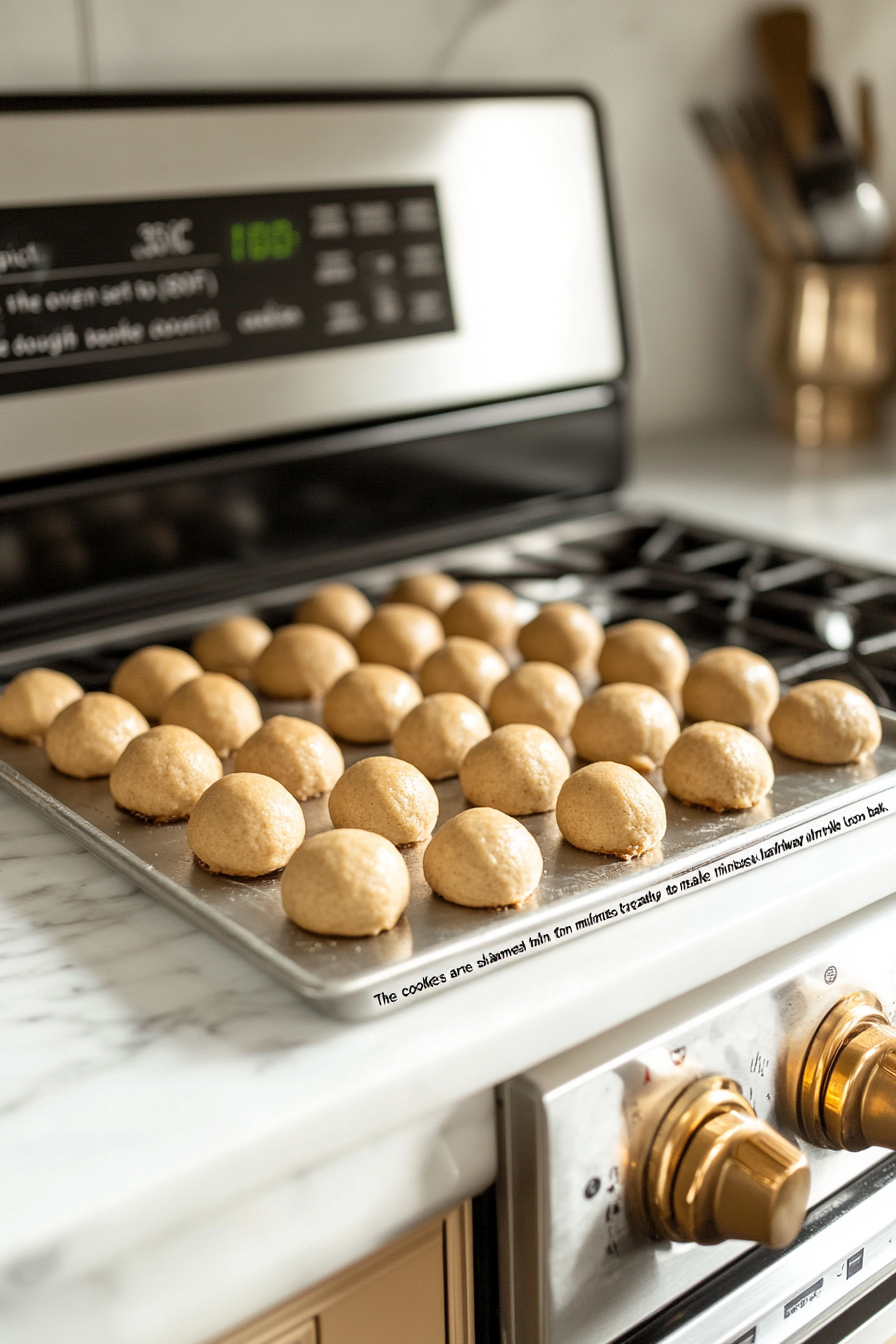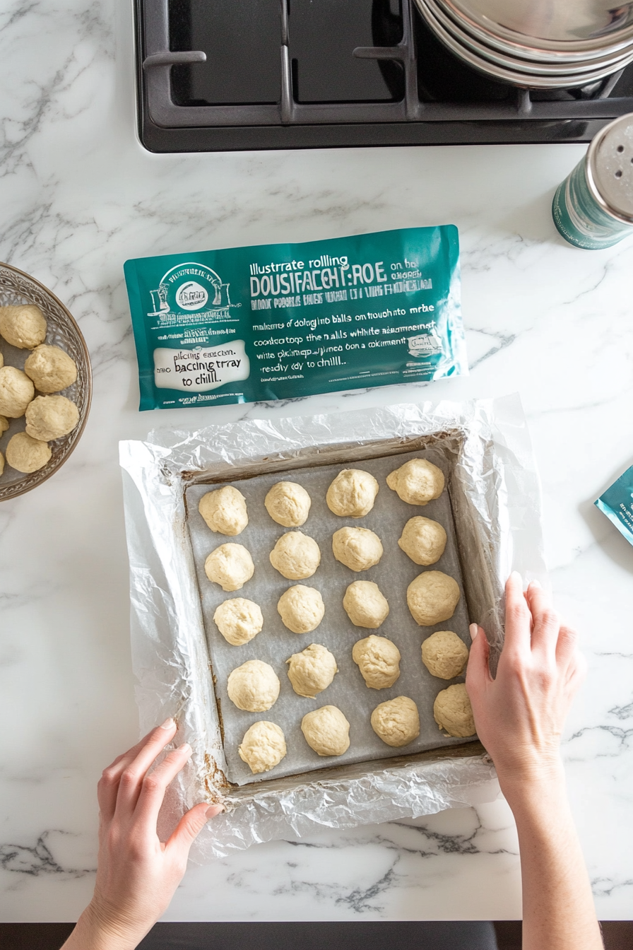 - Roll 100g of dough into balls and place them on a tray; repeat until all dough is used.
