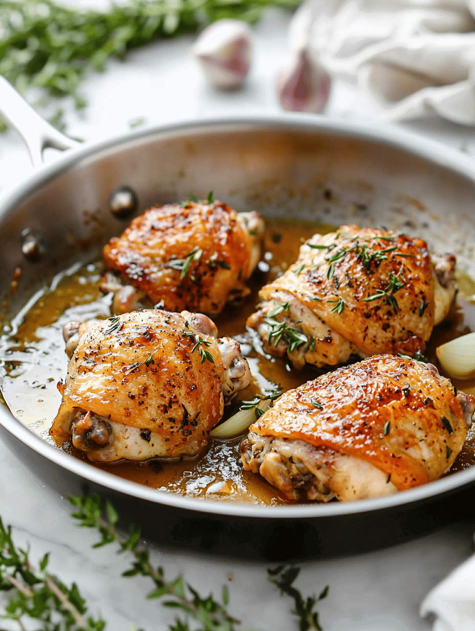 - Pat the chicken thighs dry and season them generously with salt, pepper, and thyme.