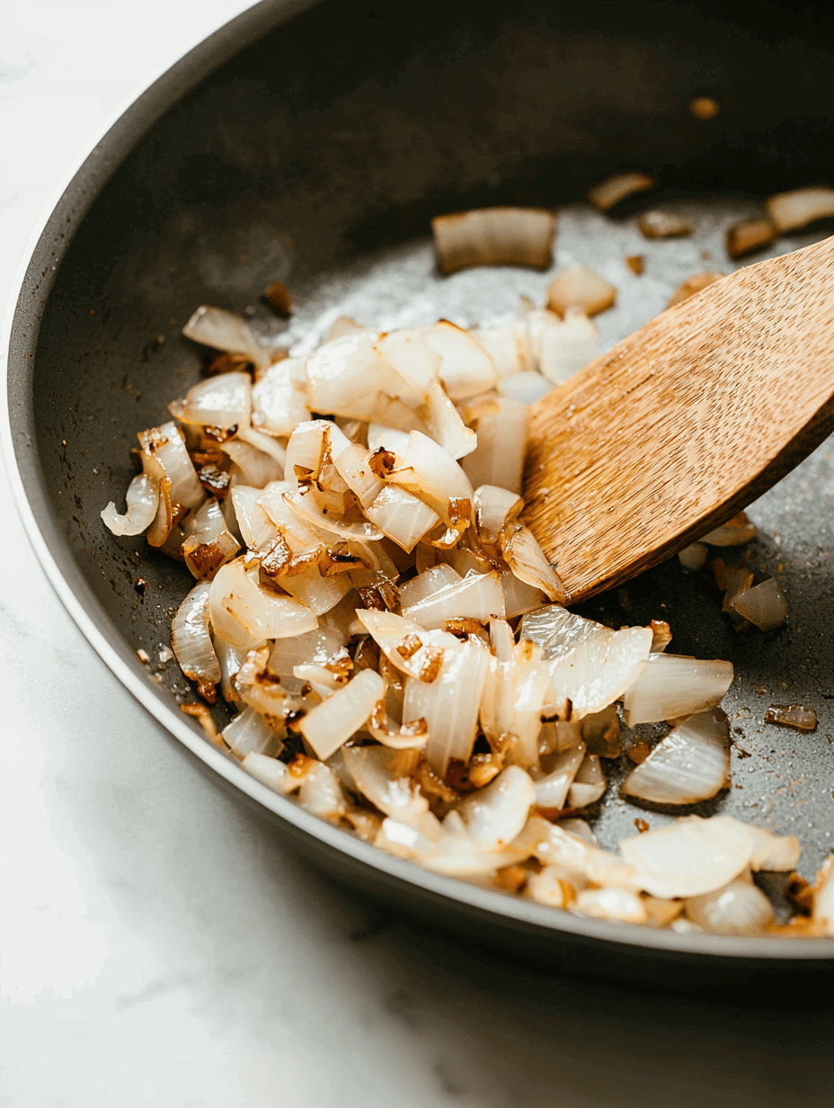 - In the same skillet, toss in the sliced onions and cook until they soften and turn golden brown, about 8 minutes, stirring occasionally to prevent sticking. Scrape up any browned bits from the pan to add depth to the flavor, then transfer the onions to the slow cooker.
