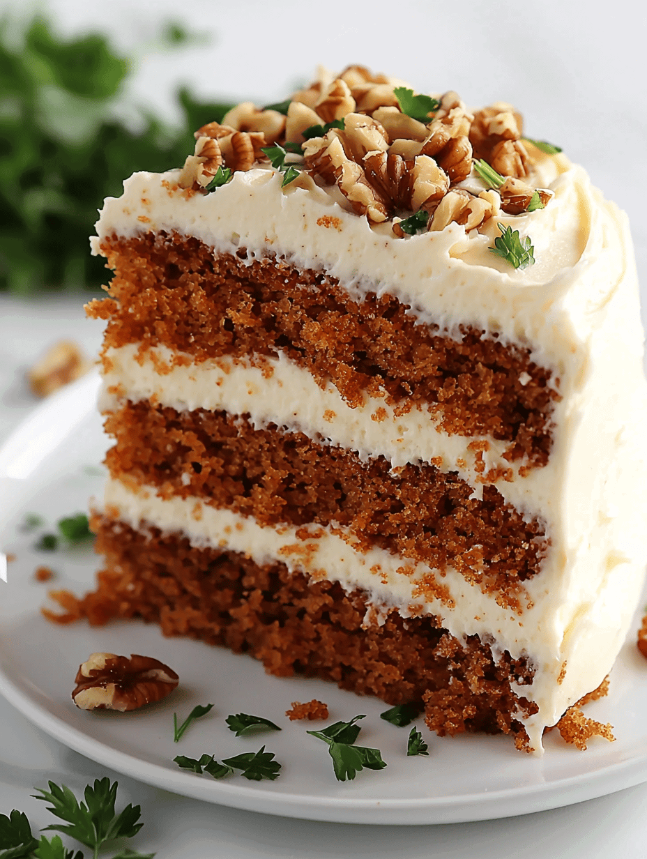 • Once cooled, slice and serve your moist, spiced carrot cake. Enjoy the tender crumb and warm aroma with your favorite beverage.
