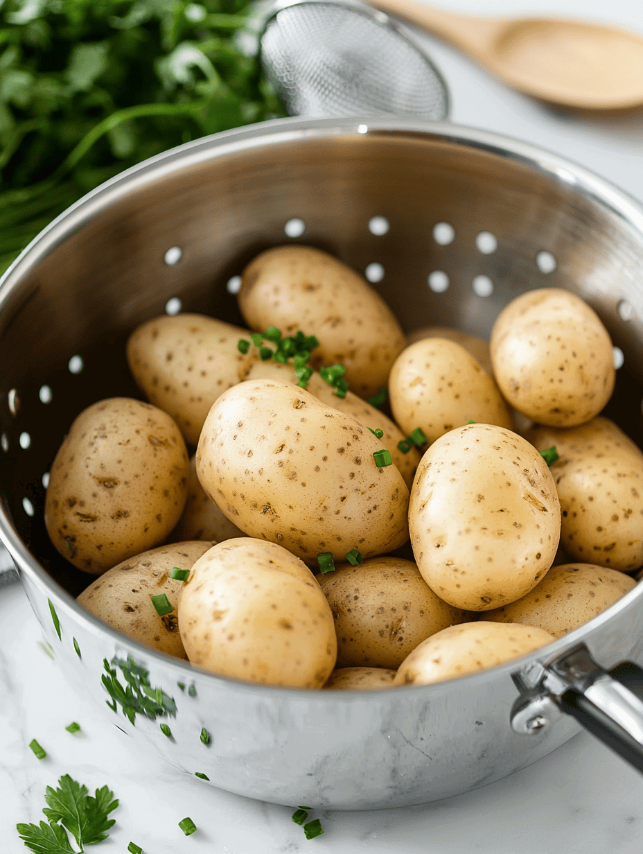 - Place the potatoes in a large pot and cover with cold water. Bring to a boil over high heat, then reduce to a simmer and cook until tender when pierced with a fork, about 15-20 minutes. Drain and let cool slightly.