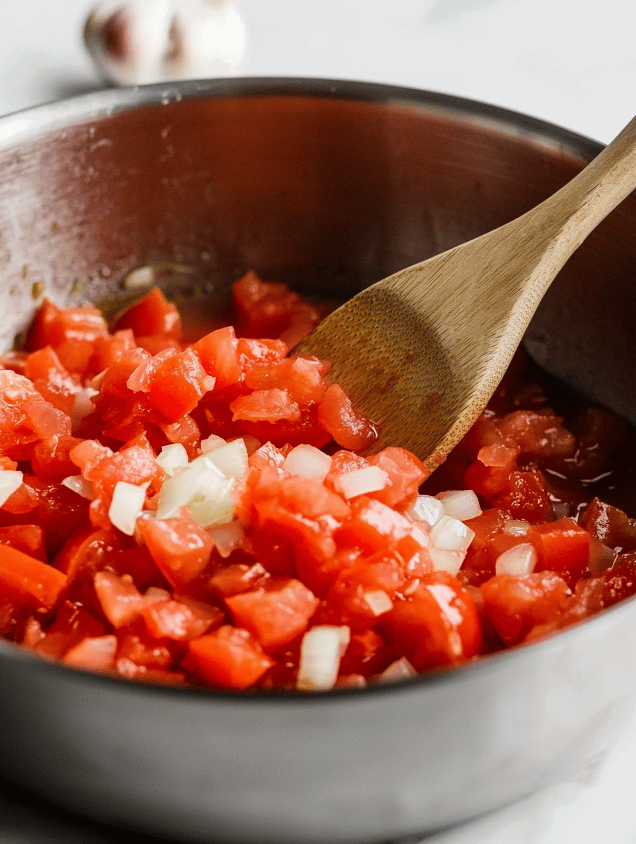 - Add the diced tomatoes with their juice and stir everything together. Let it simmer for 10 minutes, allowing flavors to meld and the sauce to thicken slightly.