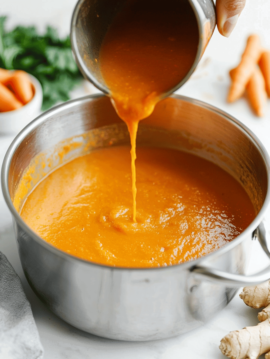 - Blend the soup until it is completely smooth and silky, with a vibrant orange color. If using a food processor, work in batches if necessary.