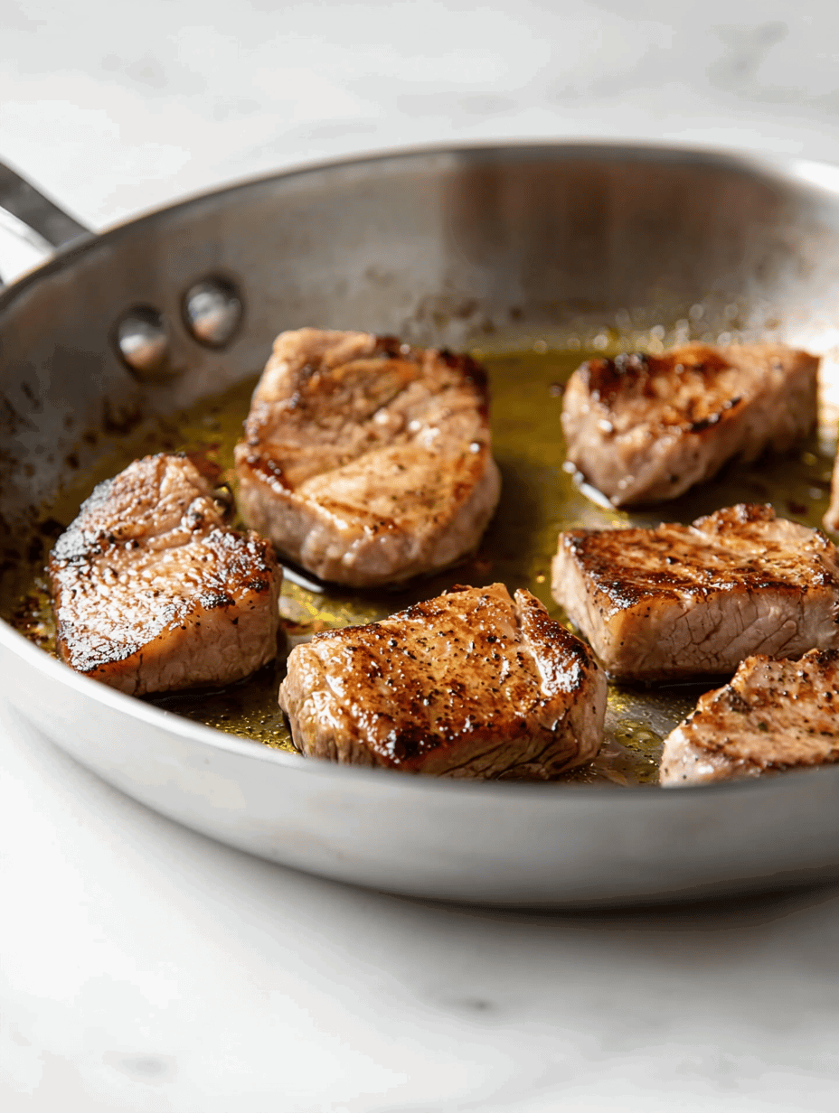- Heat a large skillet over medium-high heat and add olive oil. Once shimmering, sear the pork on all sides until golden brown—about 3-4 minutes per side—creating a flavorful crust.