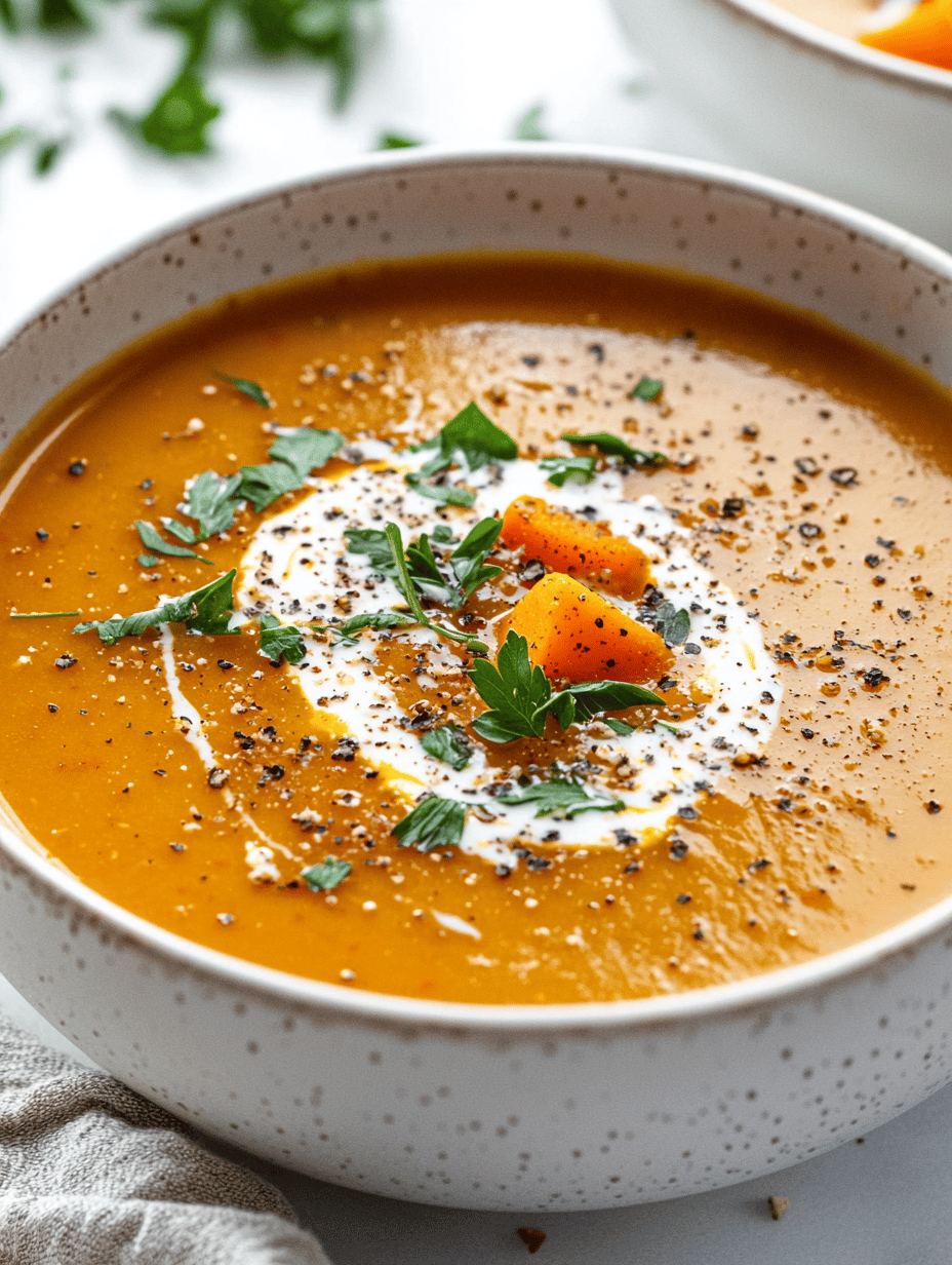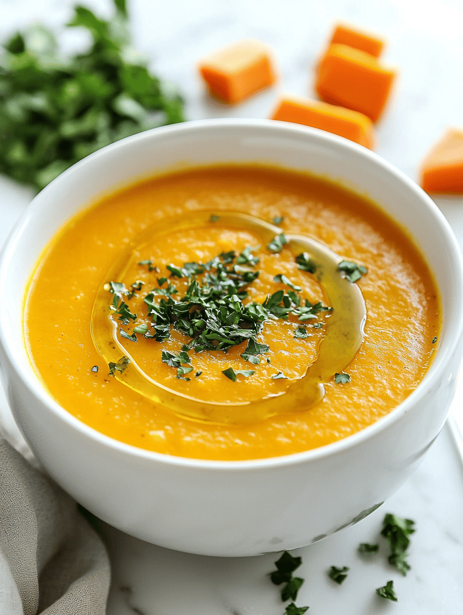 - Serve the soup hot, garnished with chopped fresh herbs or a drizzle of olive oil for added flavor. Enjoy its velvety texture and warm, autumn-inspired flavors.