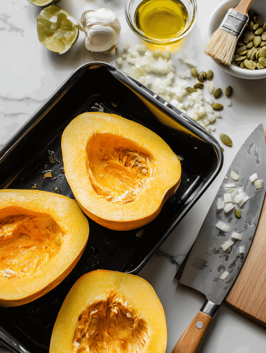 - Baking sheet: To hold the pumpkin halves during roasting.