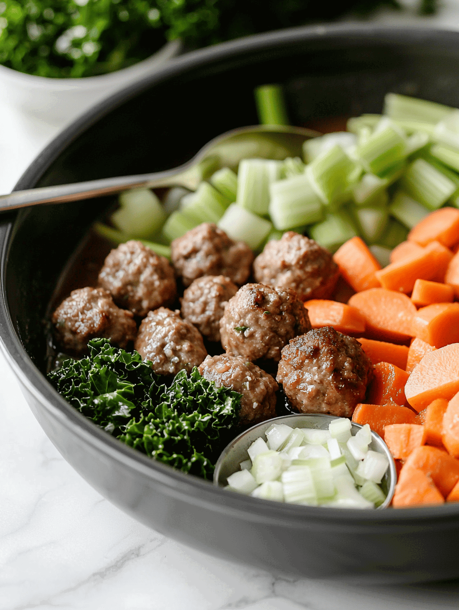- Scoop the warm, inviting soup into bowls, ensuring each serving includes a few tender meatballs along with the vibrant vegetables and herbs. Serve hot and enjoy the comforting, seasonal flavors.