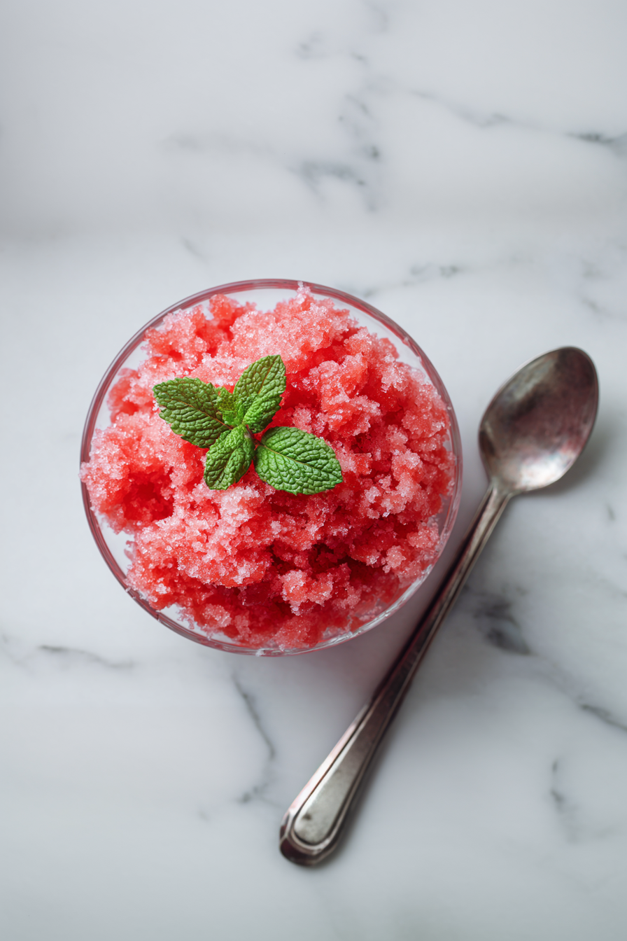 Made with just fresh watermelon, orange juice, and a touch of sugar, this granita is light, hydrating, and naturally low in calories, making it an ideal pick for anyone looking to cool down without loading up.
