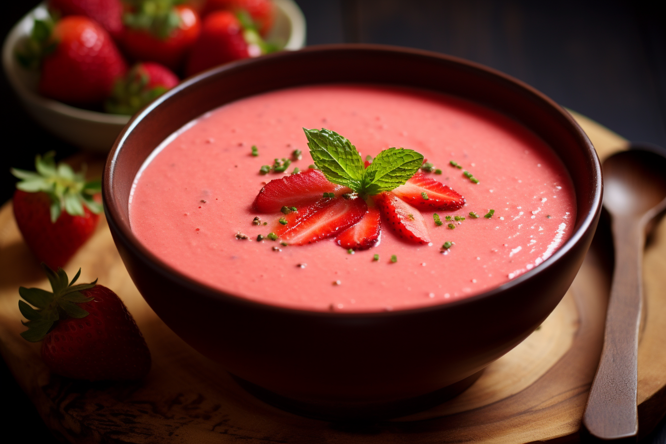 What makes this bisque special is its delicate combination of ripe strawberries, a hint of citrus, and a creamy base that come together to create a surprising yet delightful dish.