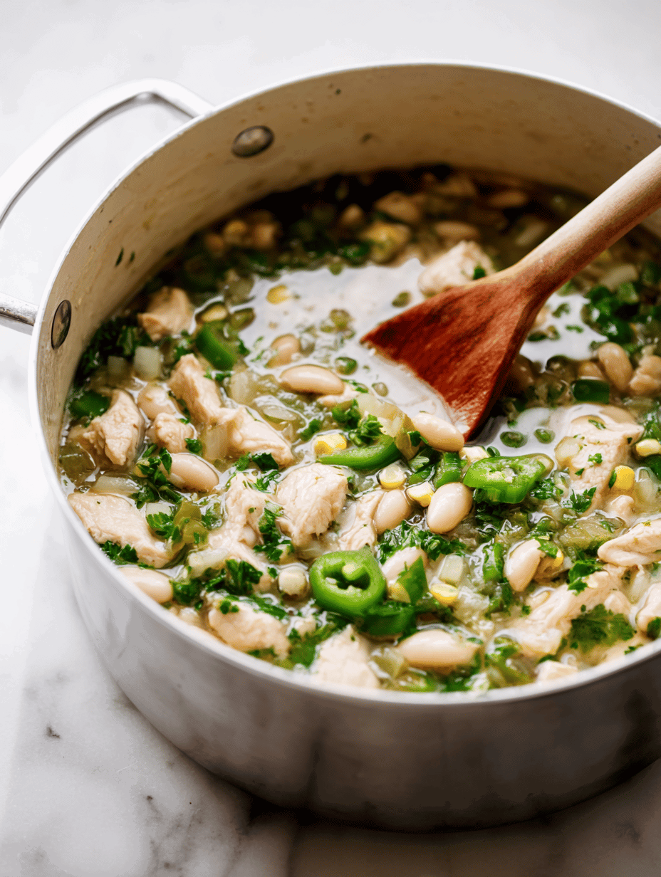 This creamy white chicken chili is made by simmering tender shredded chicken with green chilies, corn, and white beans in flavorful broth, resulting in a comforting, slightly thickened stew with a vibrant, fresh aroma. The dish combines hearty ingredients with simple techniques to produce a warm, satisfying final appearance perfect for cozy nights.