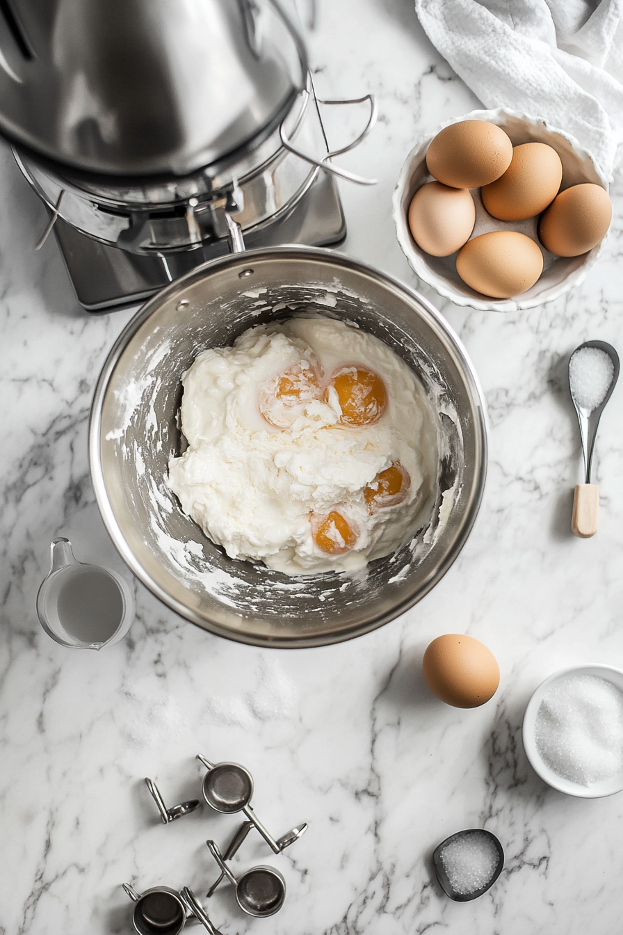 Beat eggs and sugar in a stand mixer on high speed for 8 minutes until pale and thick.