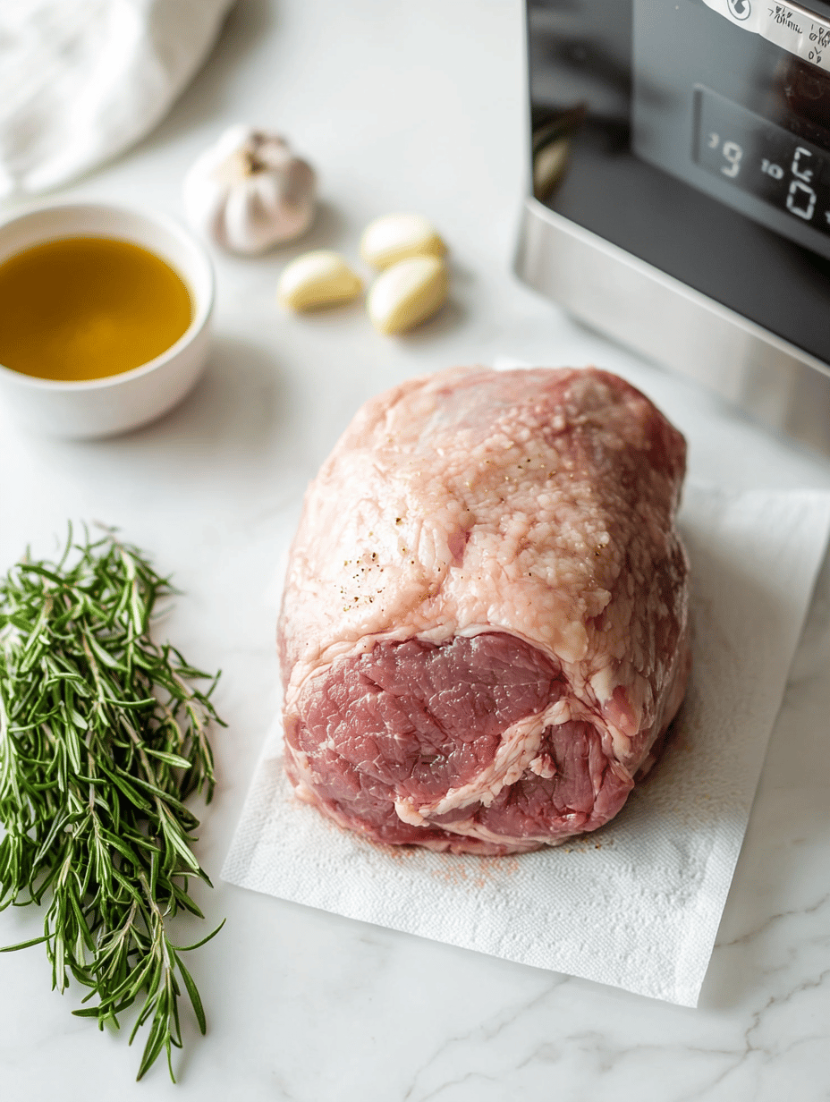 Preheat your oven to 350°F (175°C). Pat the pork roast dry with paper towels to ensure a good sear.