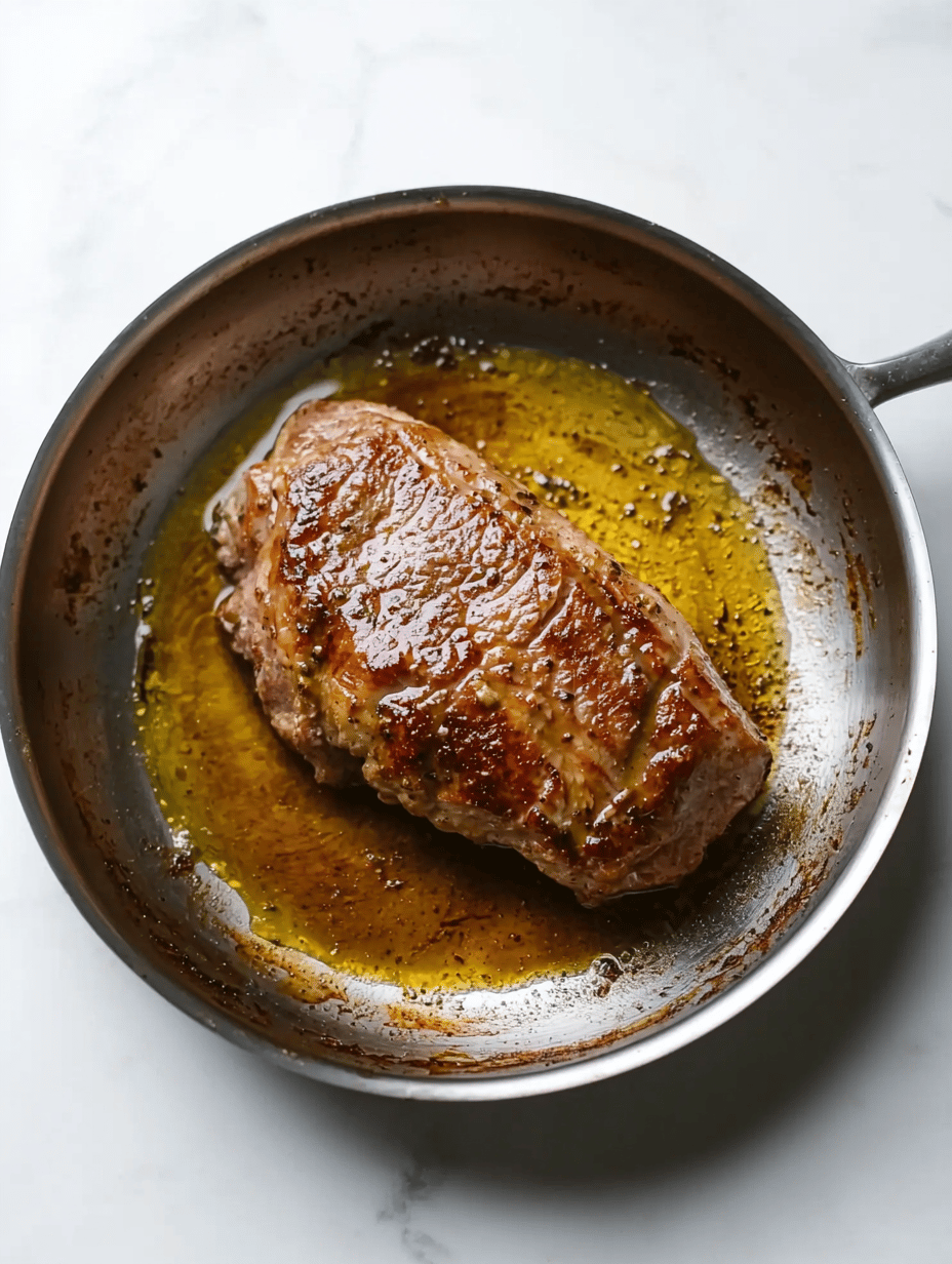 Heat olive oil in a large skillet over medium-high heat. Once shimmering, add the pork and sear on all sides until deeply browned and crusty, about 4-5 minutes per side. This step helps develop flavor and a beautiful exterior.