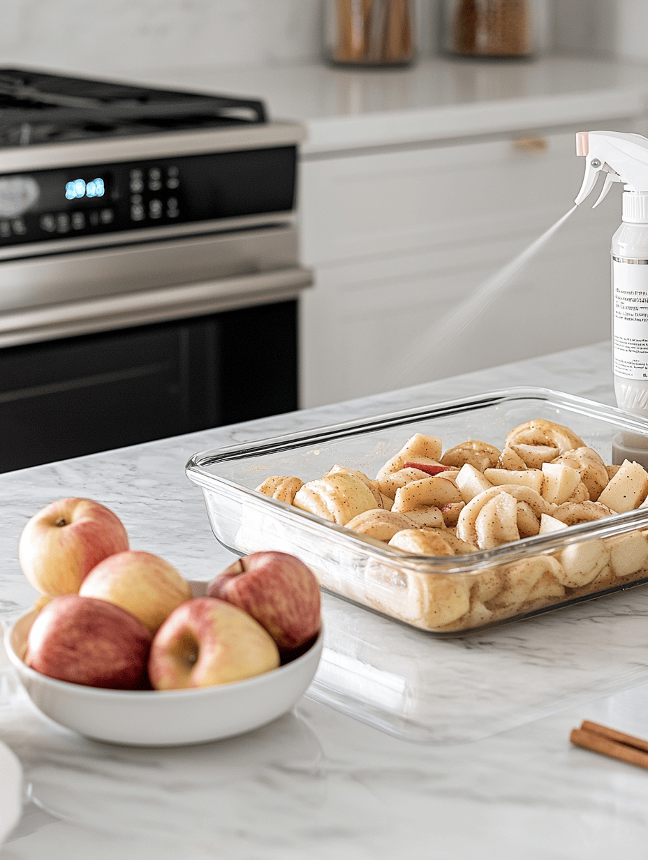 Preheat the oven to 375°F (190°C) and lightly spray your baking dish with non-stick spray to prevent sticking.