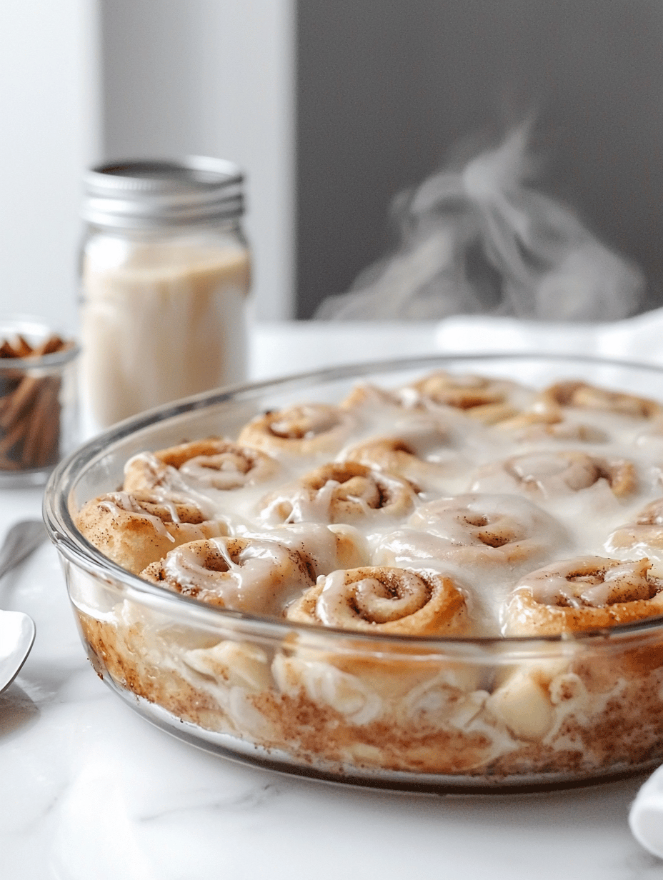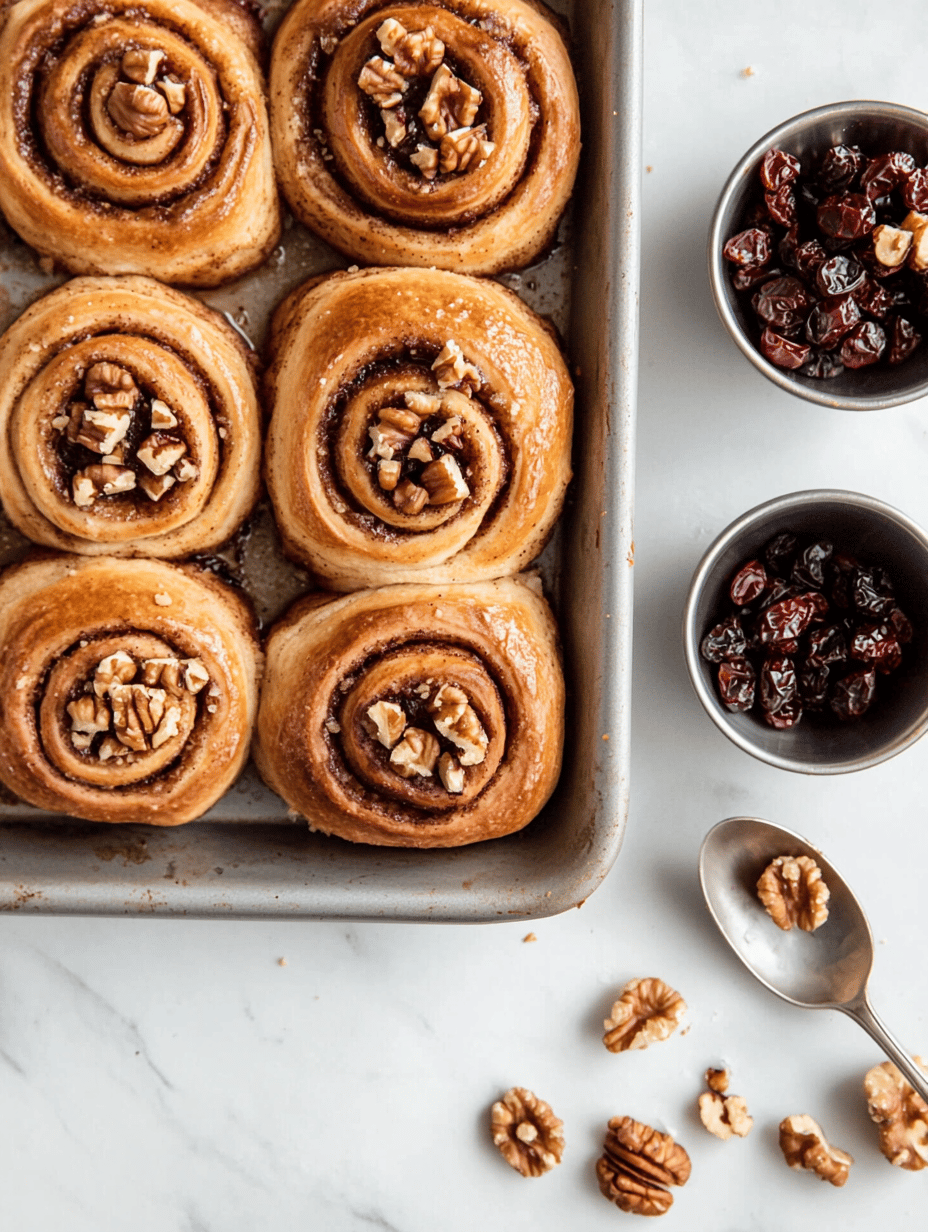 If desired, sprinkle chopped walnuts or cranberries over the cinnamon rolls for added texture and flavor.