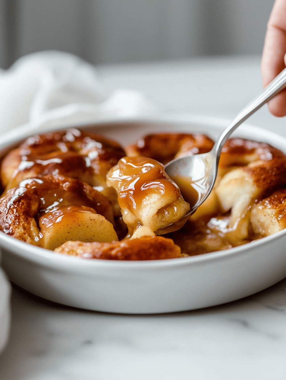 Serve warm, spooning generous portions onto plates, letting the caramelized apples and soft cinnamon rolls create a comforting, luscious bite.