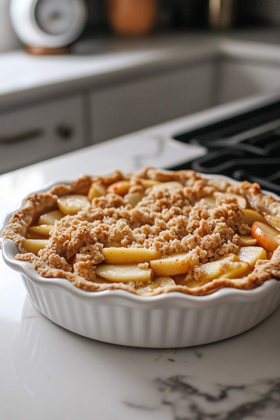 Add the crumble topping over the apples and bake for 1 hour, until the crust is golden and apples are soft.
