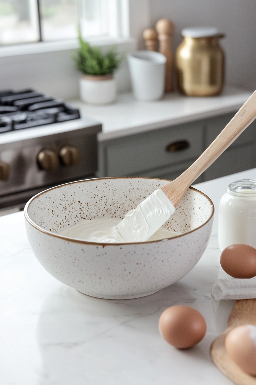 Make Batter: Alternate adding the dry mixture and Greek yogurt to the wet ingredients, starting and ending with the dry.