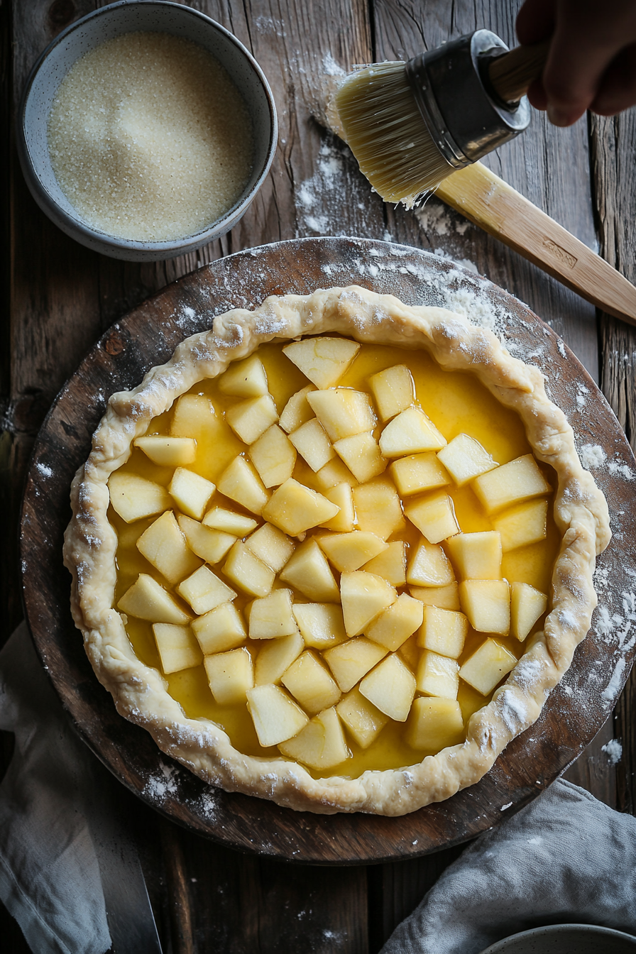 Brush edges with egg wash, sprinkle with sugar, and refrigerate for 15–20 minutes.