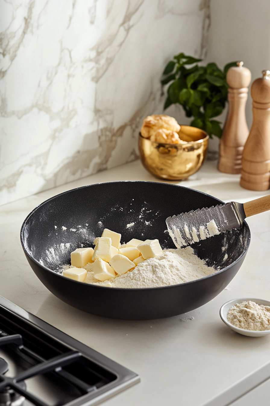 Whisk flour, sugar, and salt in a bowl.