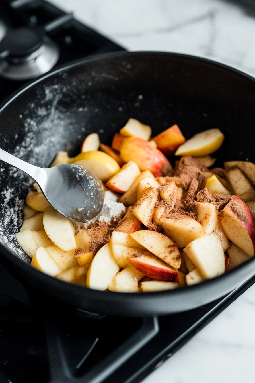 For the filling, mix apples, brown sugar, flour, lemon juice, cinnamon, and nutmeg in a bowl. Refrigerate.