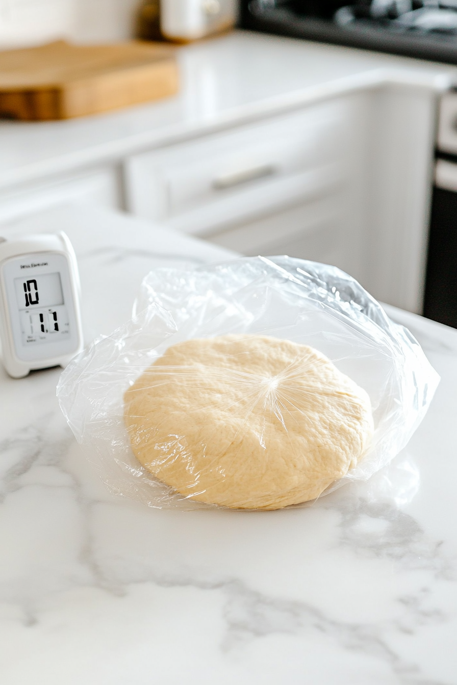 Turn dough onto a floured surface, shape into a ball, and flatten into a disc.