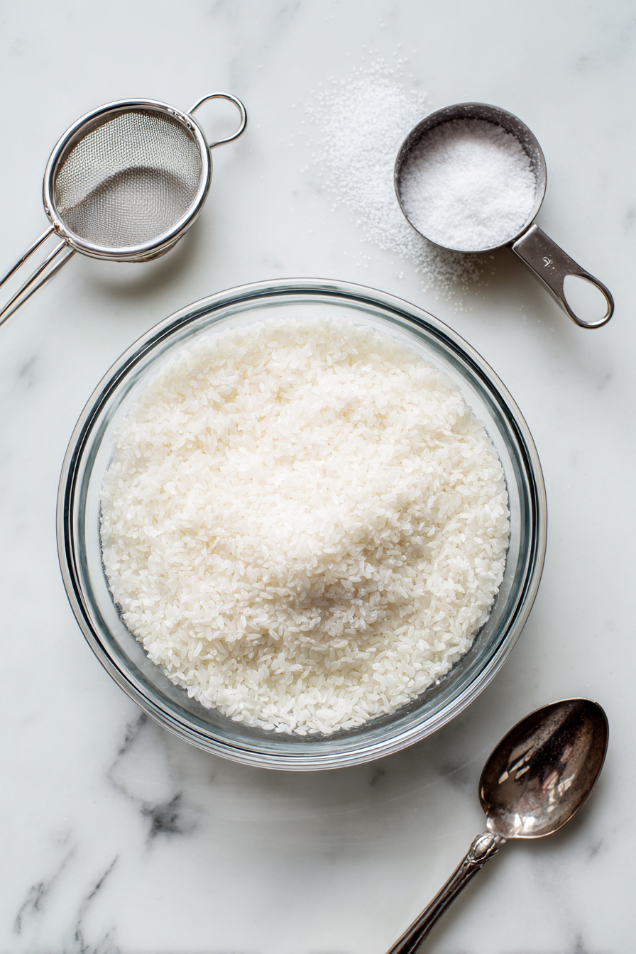 Preparation: Rinse the rice under cold water until the water runs clear. Soak the rice in water for 15-30 minutes. Drain and set aside.